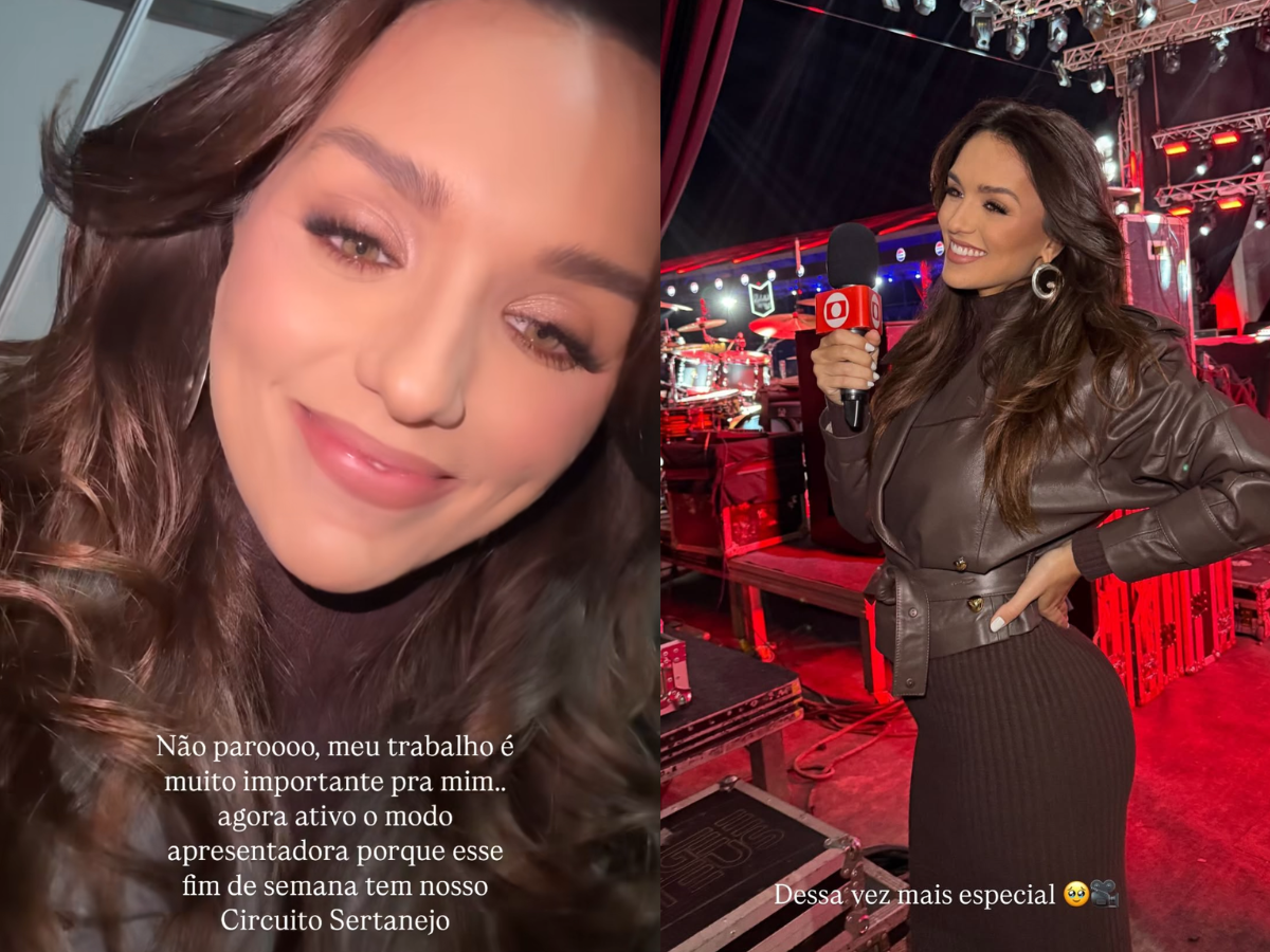 A apresentadora também publicou imagens no palco, visivelmente emocionada com o momento. “Dessa vez mais especial”, escreveu ao falar sobre a experiência de trabalhar grávida. Ela ainda destacou a importância do trabalho em sua vida: “Não paro! Meu trabalho é muito importante para mim. Agora ativo o modo apresentadora, porque esse fim de semana tem Circuito Sertanejo”.